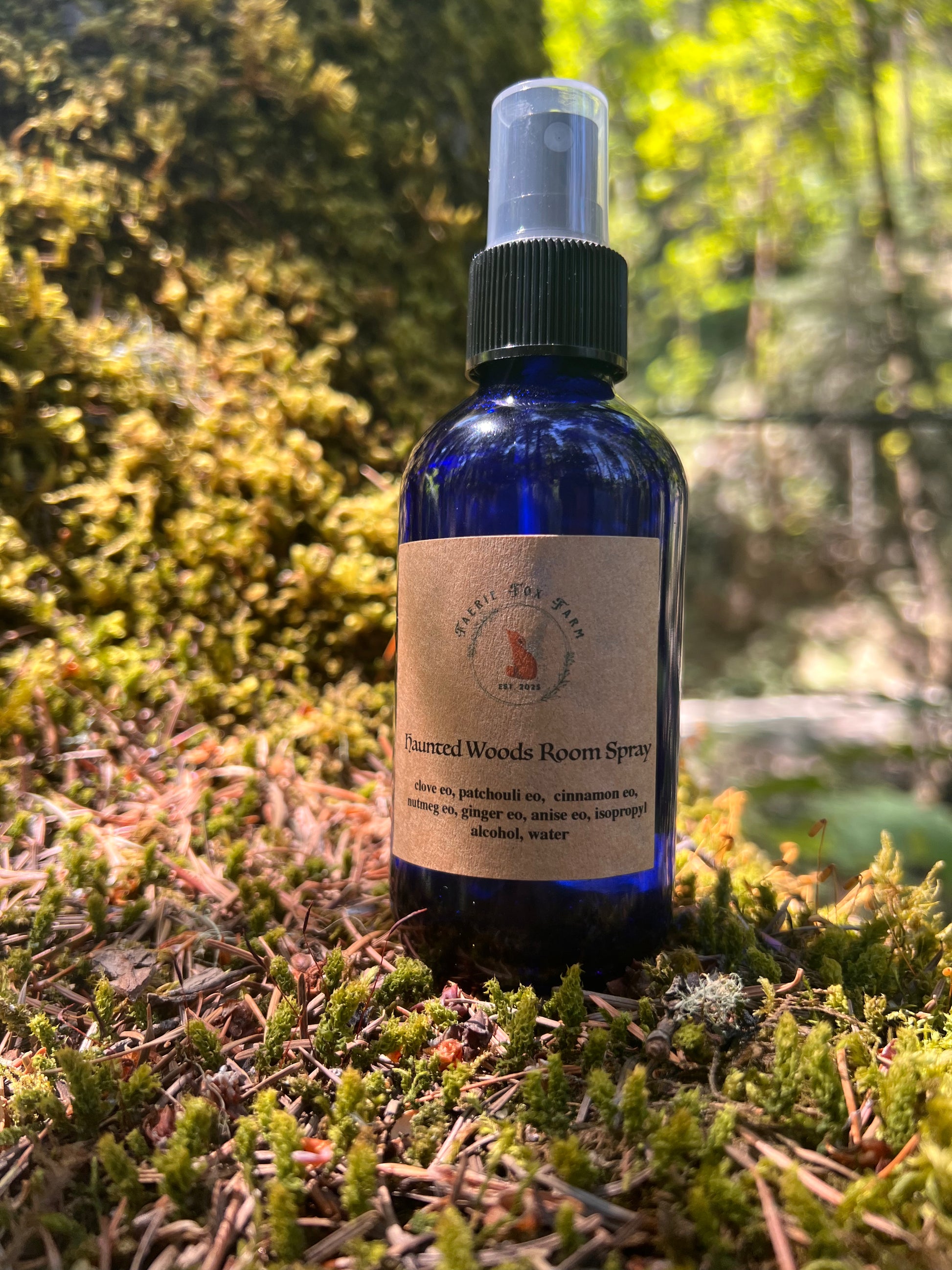 The Haunted Woods room spray is one of my favorites. It smells so good, you don’t need to spray a lot, 1-3 sprays depending on the size of the room will do the trick. The size of the bottle is nice and will last a while. Packaging is done so thoughtfully, that you really feel valued knowing the owner really cares that her customers have a wonderful experience. I have tried other products as well, such as the candles, and hanging art, and again, all thoughtfully made and are wonderful products.
